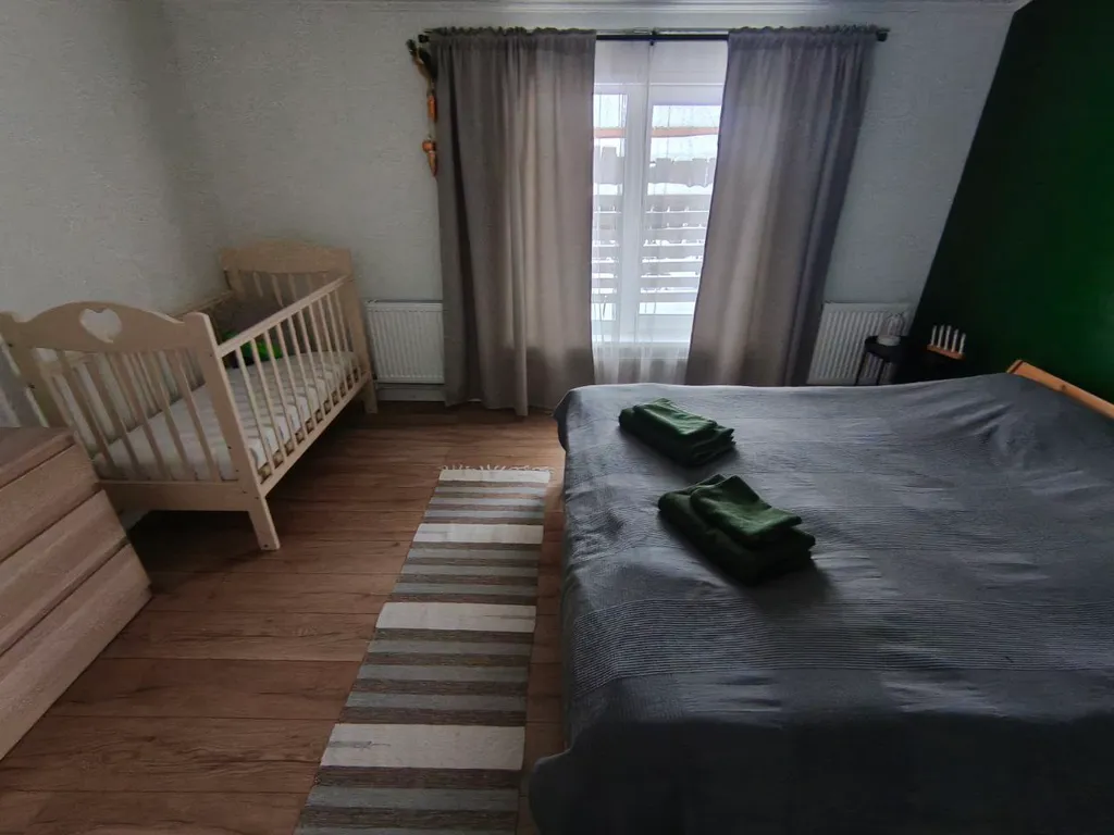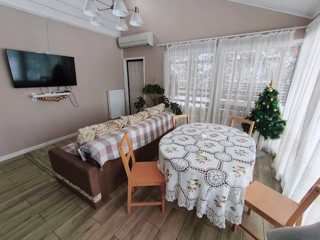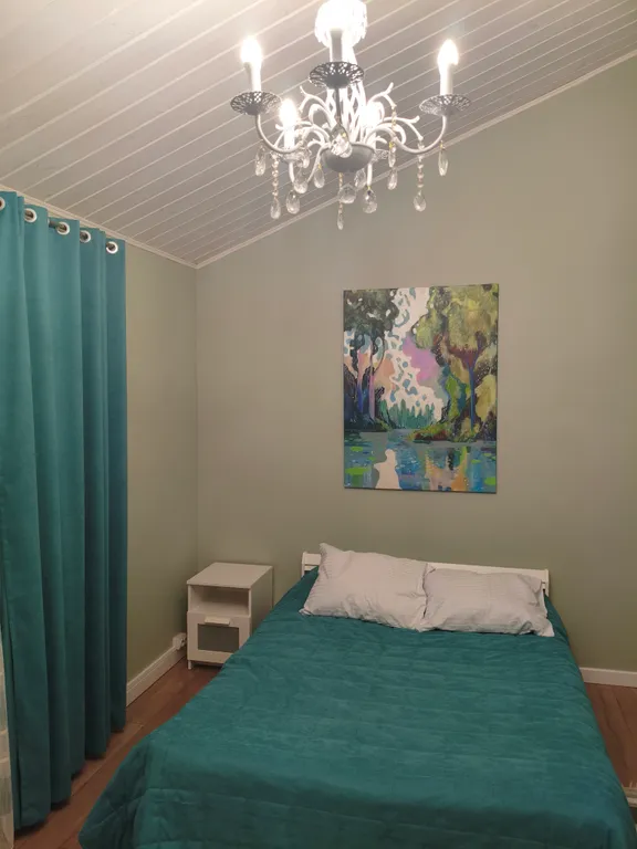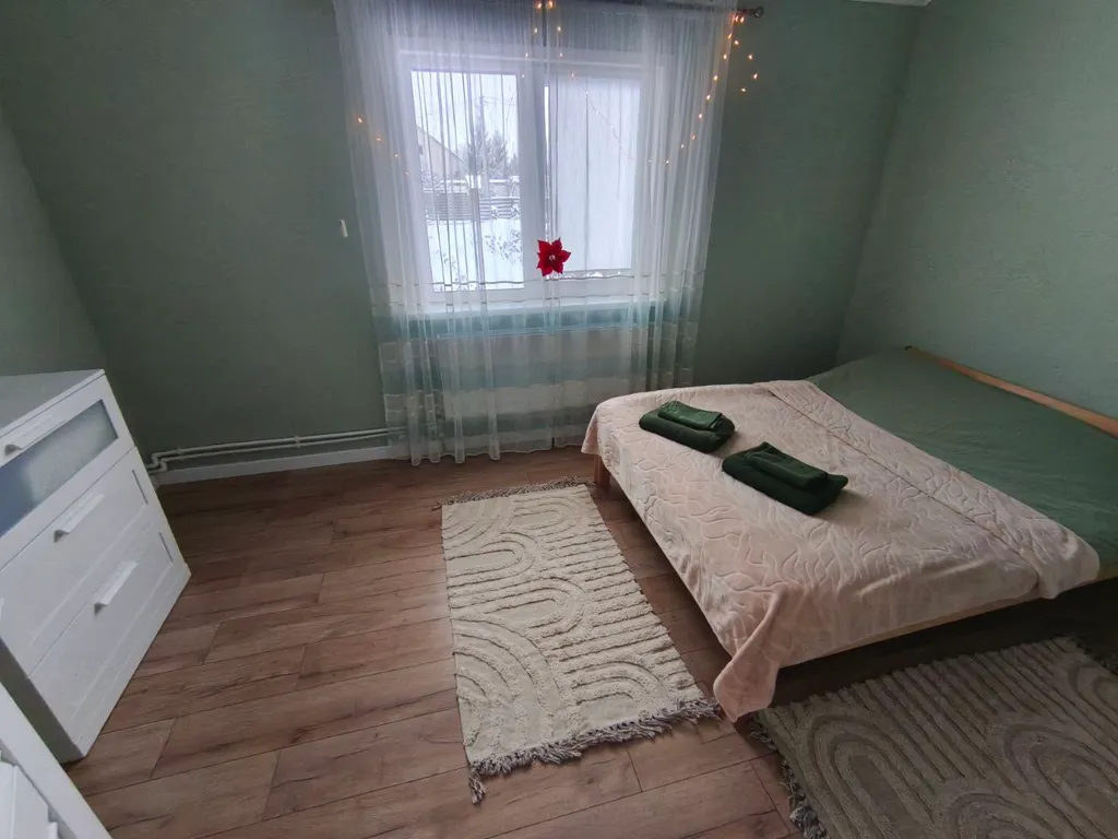 В доме две отдельные спальни и большая гостиная, совмещённая с кухней, два отдельных санузла, есть все необходимое для комфортного проживания: мебель, спальные принадлежности, посуда и пр.