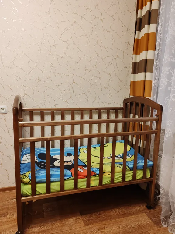 - Кроватка для детей до 3-х лет, размер 120*75 (предоставляется бесплатно со всеми спальными принадлежностями).