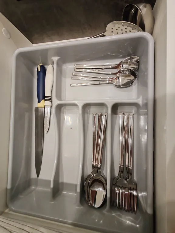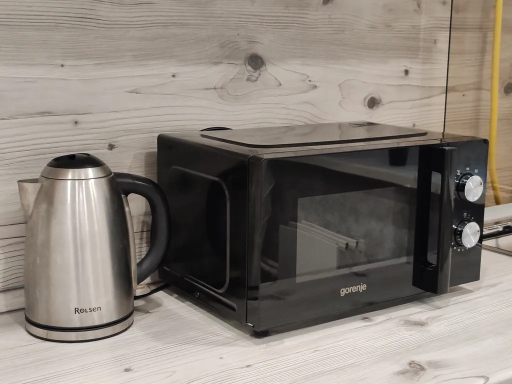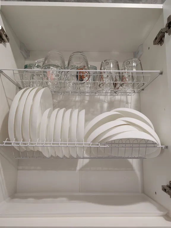 - Полностью оборудованная современная кухня с необходимыми кухонными принадлежностями и посудой (холодильник, газовая плита, микроволновка, духовка, стиральная машинка, чайник).