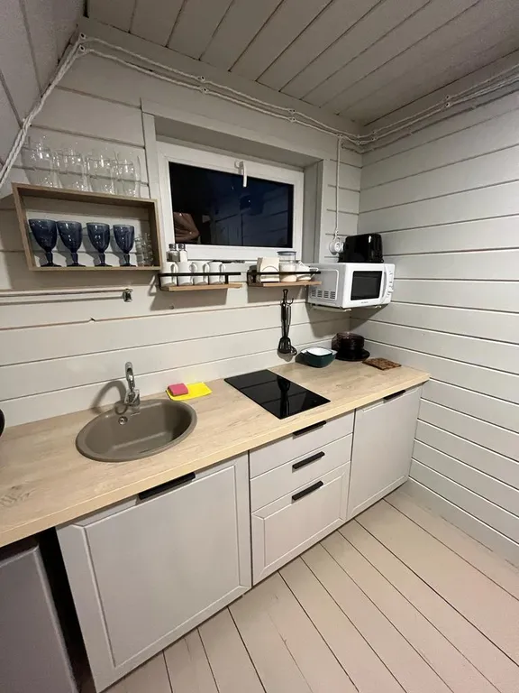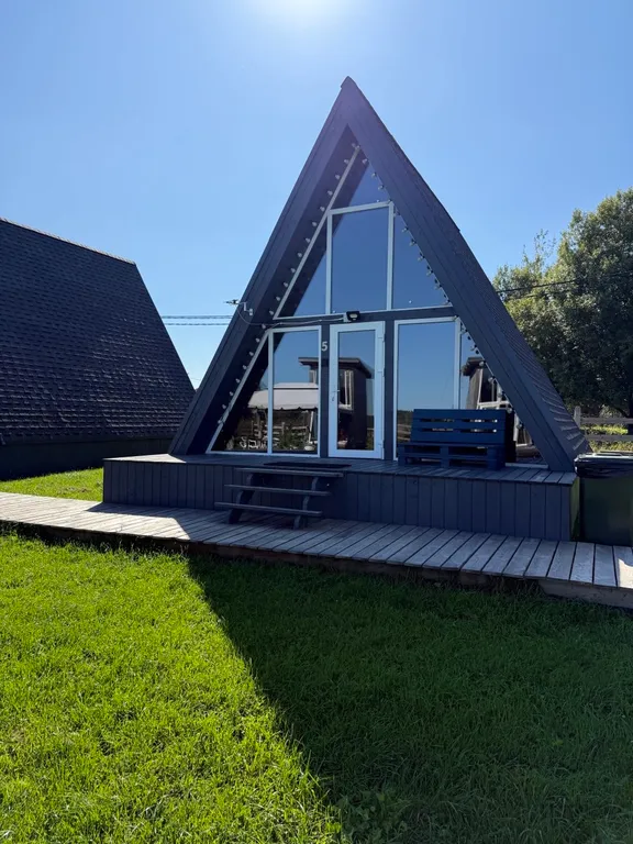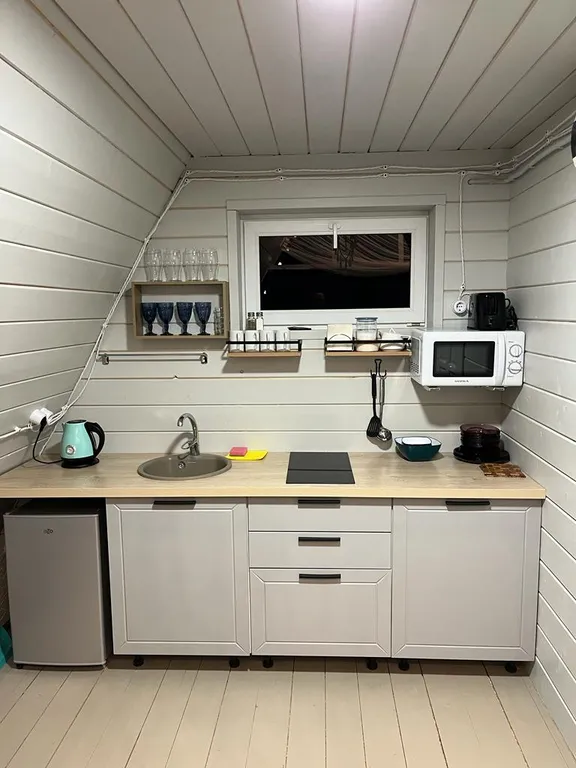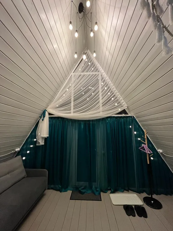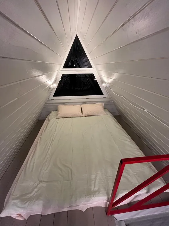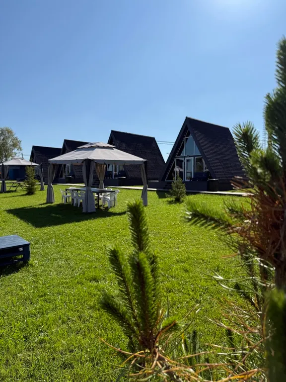 Шесть 1-этажных домиков 40 кв. м. С антресолью. Размещение 2-4 человека. Подходит для комфортного отдыха одной пары или пары с детьми. Спальня (мансардный этаж) с качественным двуспальным матрасом 180х200 см., на первом этаже мягкий интерьерный диван (спальное место 140х190 см.). В домике оборудована кухня с бытовой техникой и посудой. Ванная комната с туалетом, душевой кабиной, теплым полом и водонагревателем. Чистейшая фильтрованная вода. Качественное постельное бельё и комплект полотенец для каждого гостя.