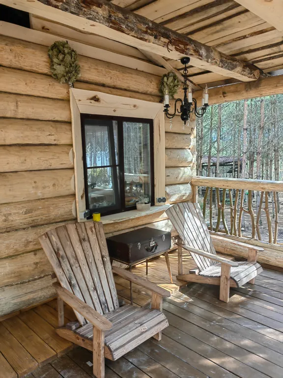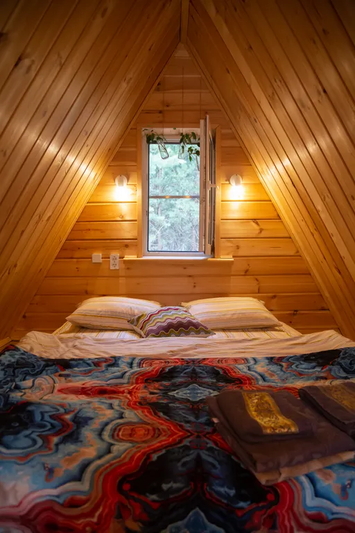 Гостевой домик a-frame в сосновом лесу на отдельной территории.