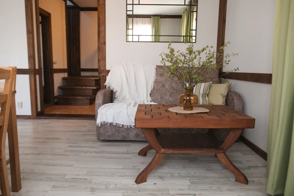 На нашей территории 12 уютных домов на выбор, есть бани, чан, спортивная и детская площадки, огород, мини ферма (в летний период), искусственный пруд, и наконец, беседки и зона барбекю.
