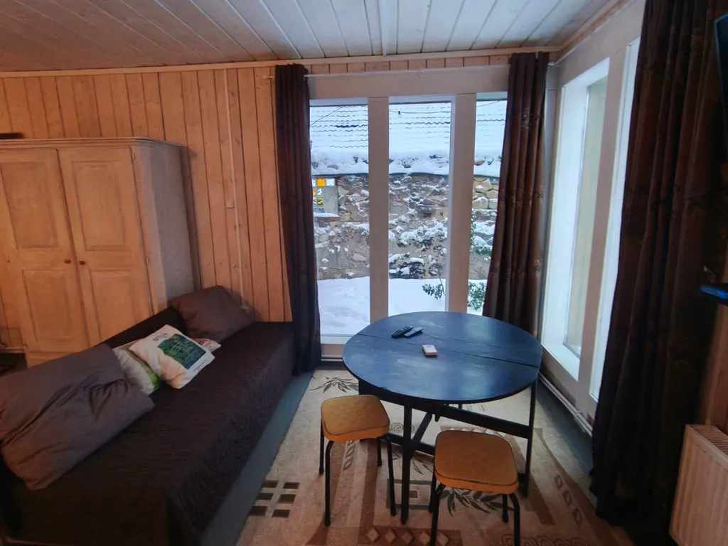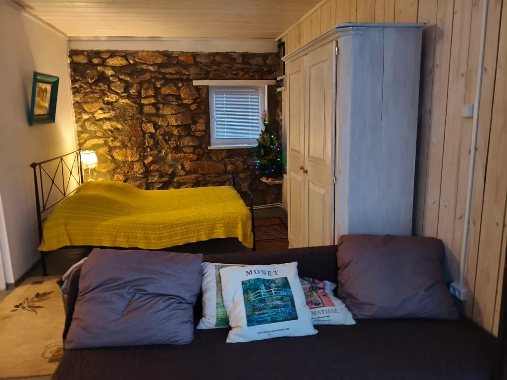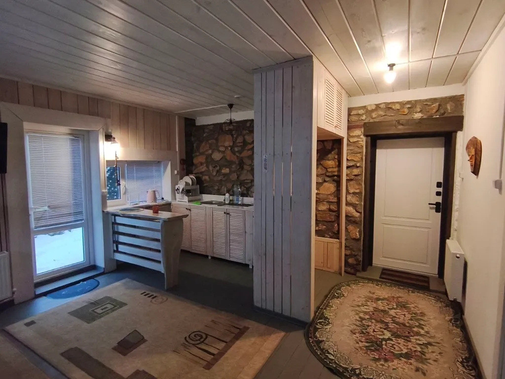 Дом рассчитан на размещение до 4 гостей. Планировка удобная, дом тёплый, чистый, с новым ремонтом и подходит для проживания круглый год. В доме одна жилая зона со спальными местами: двуспальная кровать и двуспальный диван.