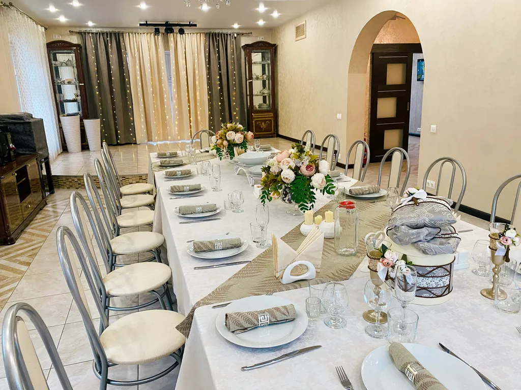 Банкетный зал вмещает до 32 гостей максимум, на также ночь до 32 человек.