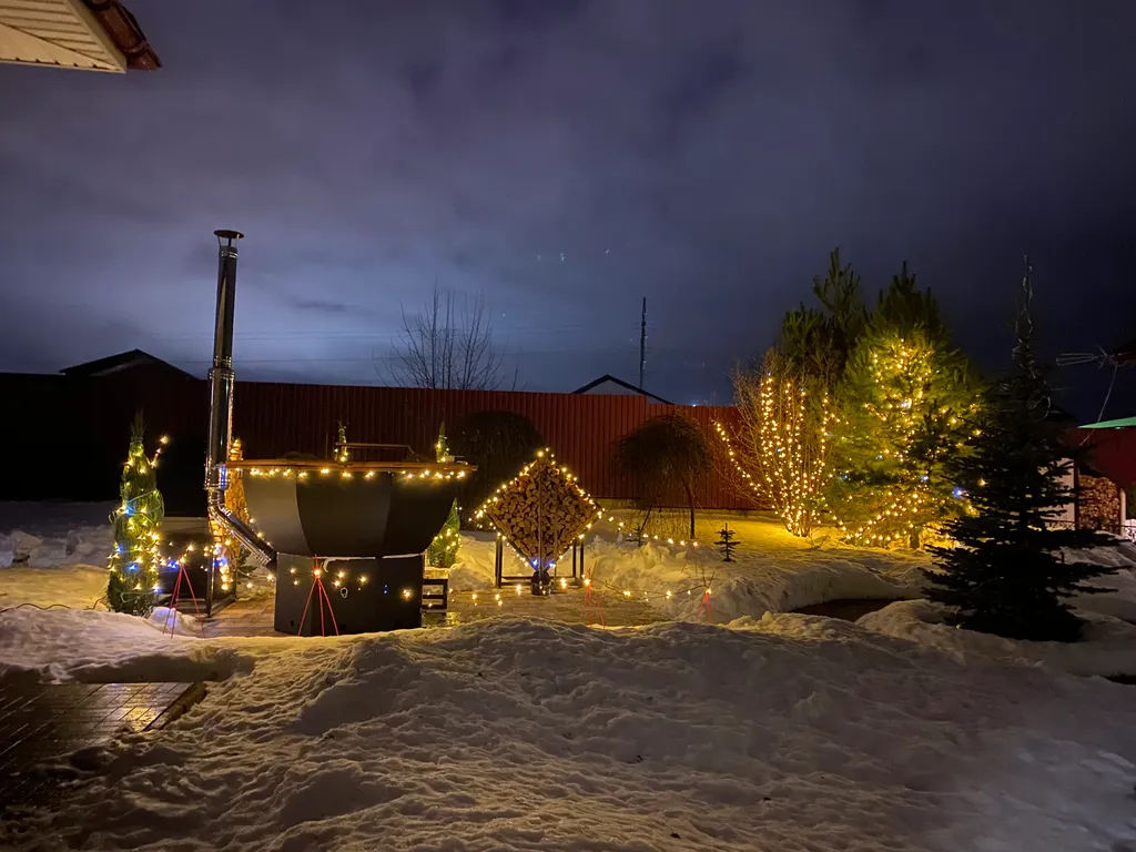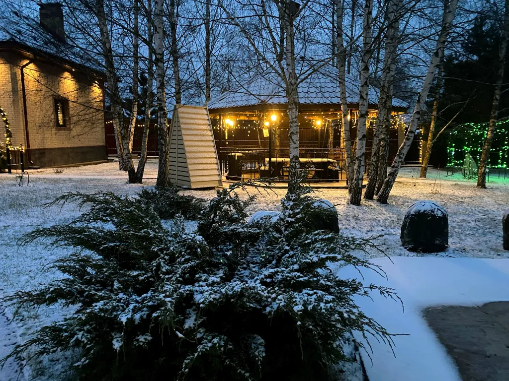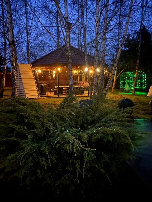 25 соток, газон, дорожки, ели, сосны, цветники, кованная беседка на 18 человек, гостевой дом, баня, банный чан, мангальная зона, парковка на 12 авто, курятник, детская площадка, дровник, летний бассейн.