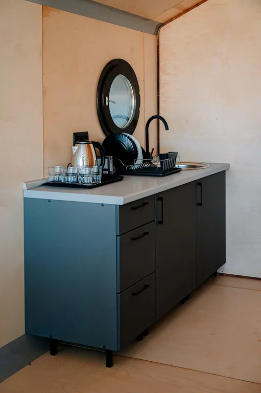 *мини-кухня (чайник, холодильник, индукционная плита, микроволновка, необходимый набор посуды)