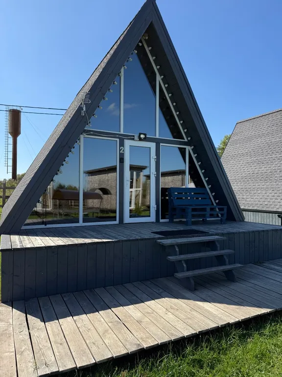 Шесть 1-этажных домиков 40 кв. м. С антресолью. Размещение 2-4 человека. Подходит для комфортного отдыха одной пары или пары с детьми. Спальня (мансардный этаж) с качественным двуспальным матрасом 180х200 см., на первом этаже мягкий интерьерный диван (спальное место 140х190 см.). В домике оборудована кухня с бытовой техникой и посудой. Ванная комната с туалетом, душевой кабиной, теплым полом и водонагревателем. Чистейшая фильтрованная вода. Качественное постельное бельё и комплект полотенец для каждого гостя.