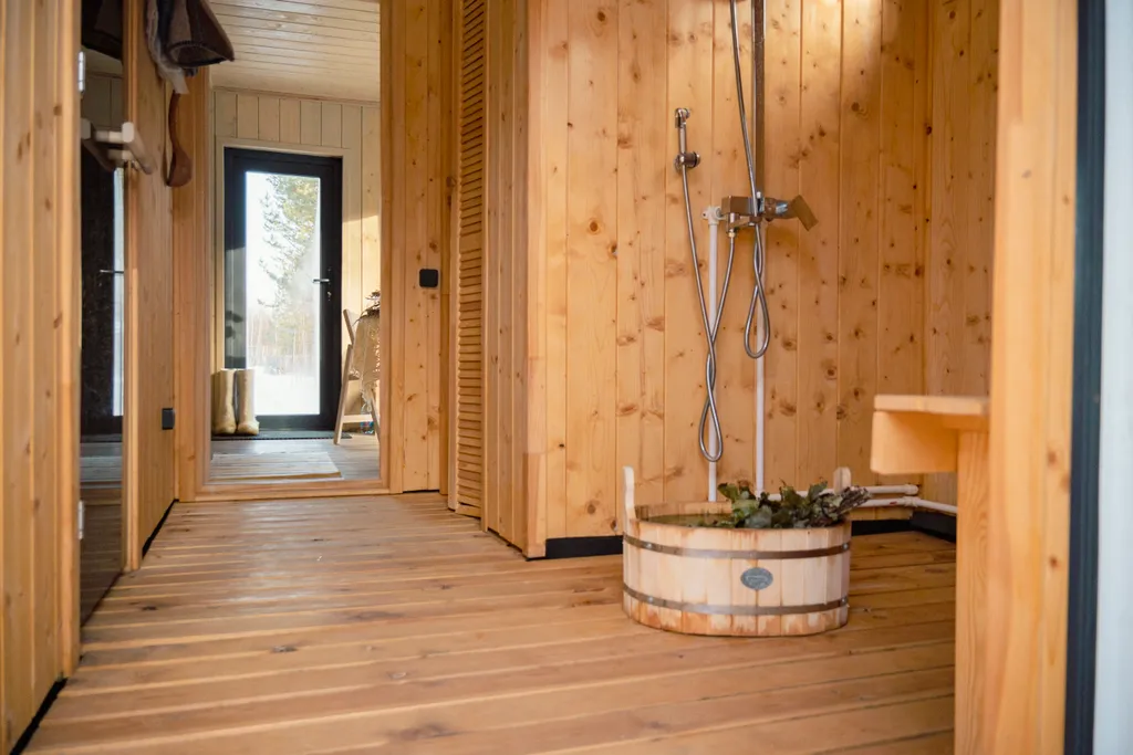 Баня фурако — горячий чан на дровах (дополнительная услуга).