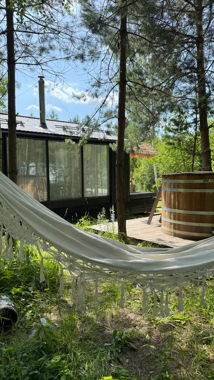 Наша территория это 3 Га смешного леса, на которой расположены два уютных, скандинавских дома Мокко и Chino.