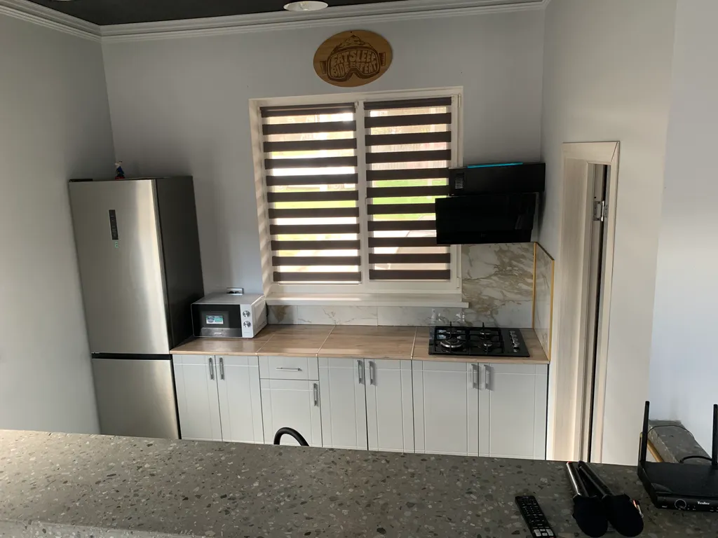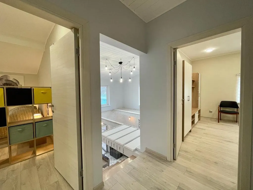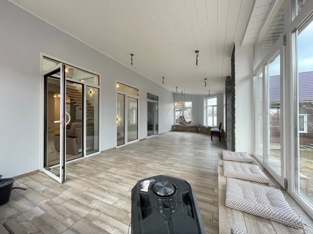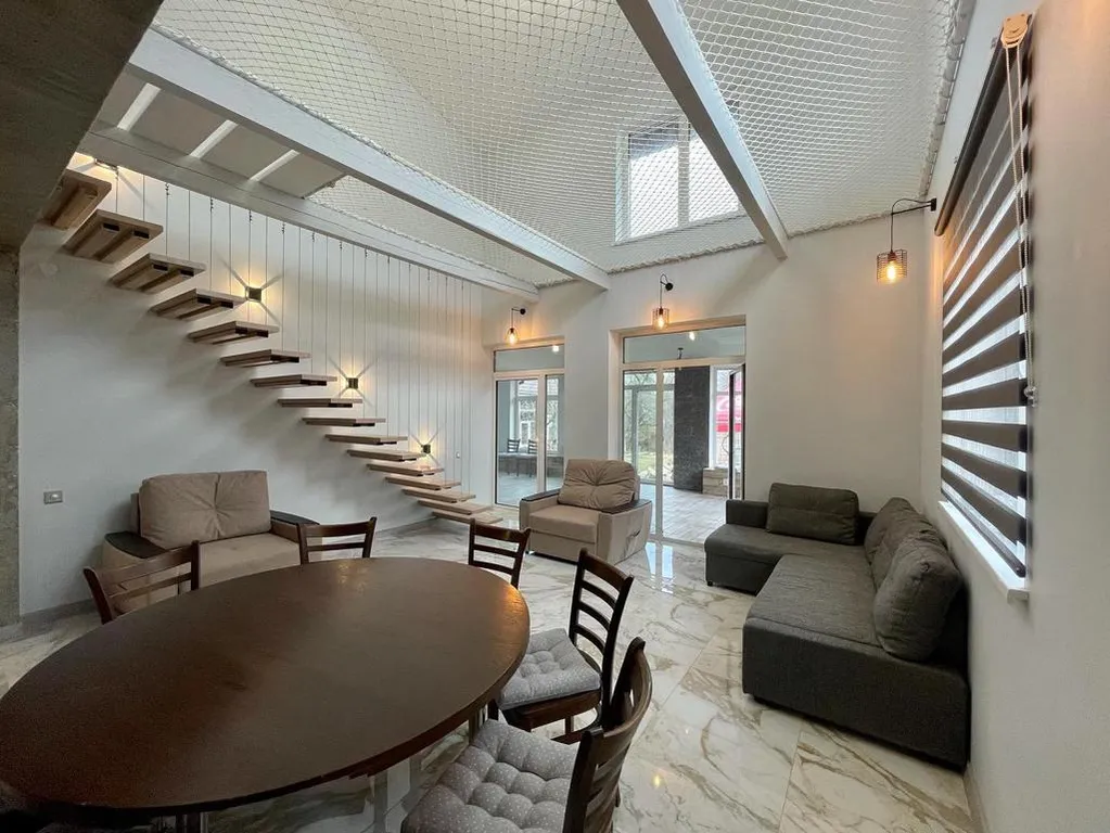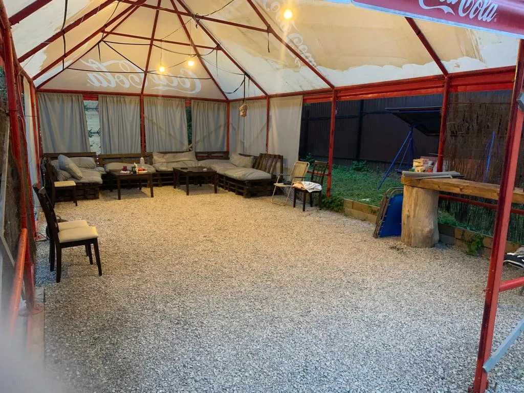 В доме 5 комнат, 3 санузла, кухня с баром, обеденная зона, чилаут-терраса с подвесными качелями, настольным футболом и аэрохокеем, огромный гамак 20м2, фото зоны, караоке, кальян, беседка с огромным диваном, мангальная зона с казаном, костровая чаша.