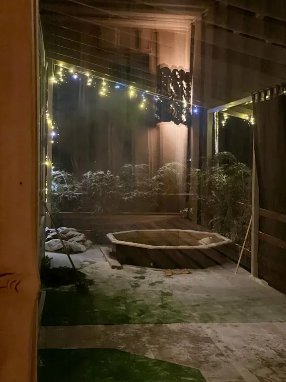 На территории также расположенны: огромная панорамная баня с горячим чаном, и зонами для отдыха и атмосферных фотографий (гамак, терраса с качелями, мангальная, беседка с диванами, караоке, кальян, парения от профессиональных пармастеров, футбольное поле, трасса проката детских электро квадров и питбайков).