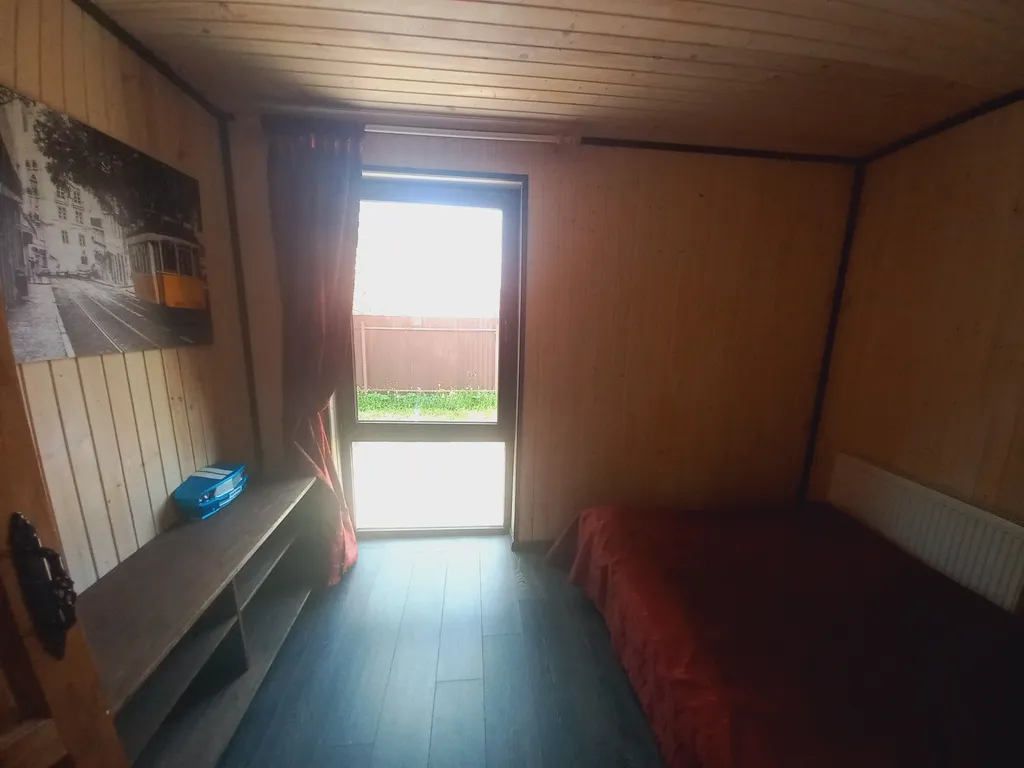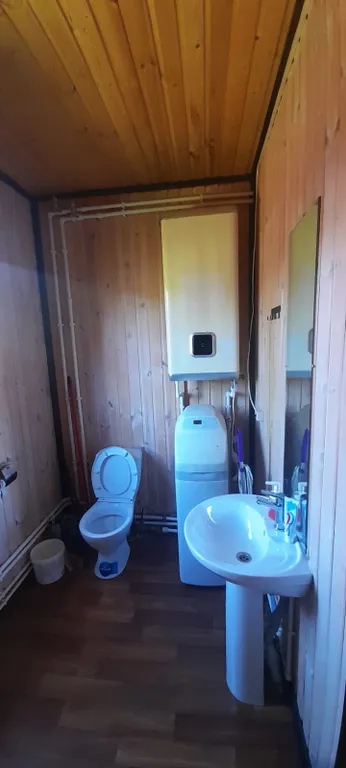 - Одноэтажный, утепленный, каркасный дом 38 м2 в хорошем состоянии на огороженном участке 5 соток. Санузел совмещенный.
