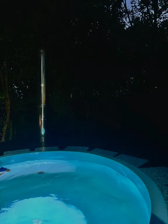 - Горячая купель готовим к приезду, купаться-париться вечером, по предварительному запросу (+3850), Чан с горячей водичкой +40° +44°, одной растопки хватает на 3,4 часа купаний, как в бане, только на свежем воздухе.