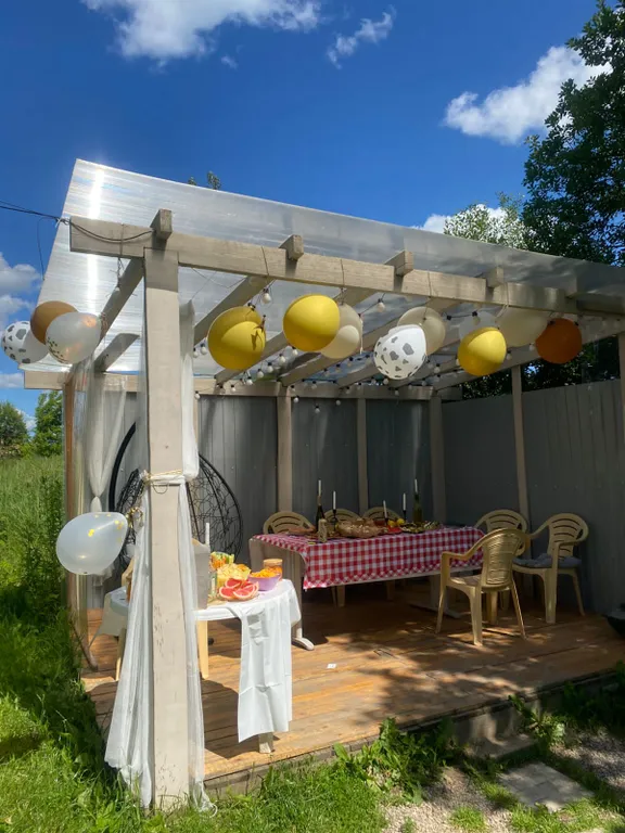 - Красивая беседка крытая с вечерним освещением ( не отапливается, но укрывает от ветра и осадков )