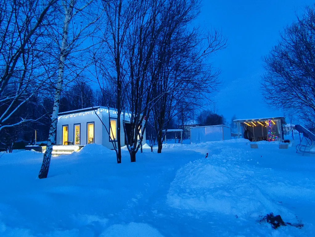 Если вам нужен домик без купели, И вы не планируете купаться, есть рядом на соседней улице такой же только в синем интерьере, есть здесь на карте в поиске можно набрать дом 50 метров с купольной беседкой, синий интерьер)