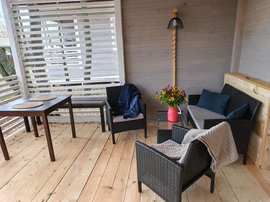 Дом рассчитан на комфортное проживание трёх гостей. Если вас больше, то есть возможность арендовать второй домик на соседнем участке.