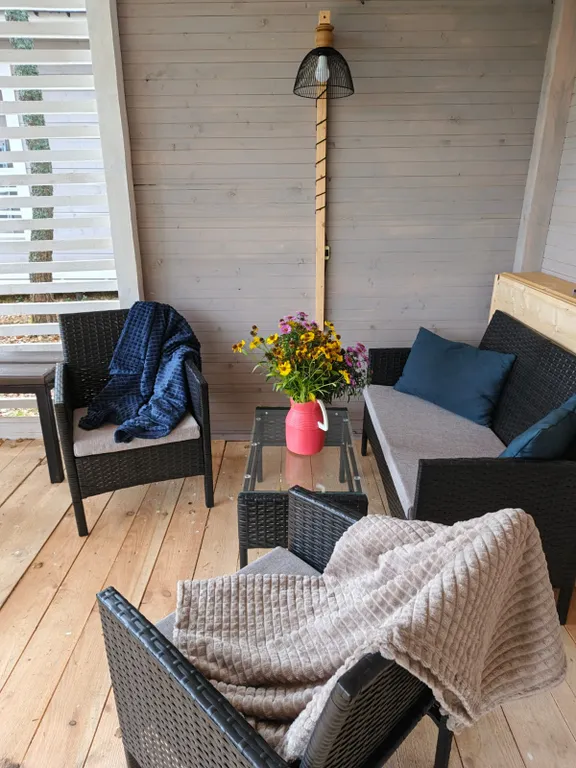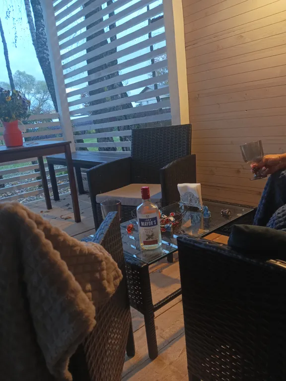 Вас ждёт просторная веранда с вечерним освещением, уличной мебелью, пледами, удобная мангальная зона (решётки, шампура и казан предоставляем), отличная баня (оплачивается отдельно).