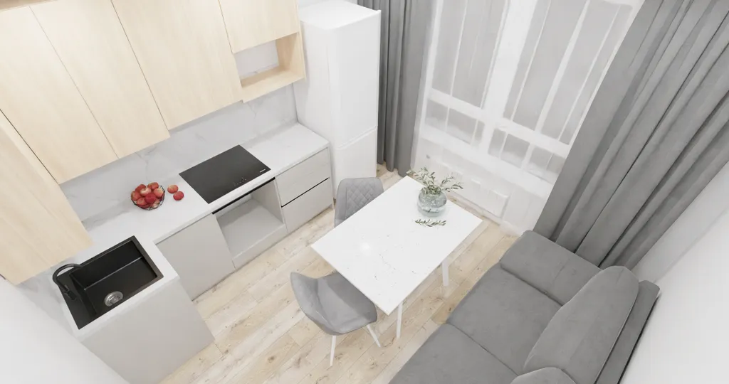 - Кухня-гостиная с двуспальным диваном,
