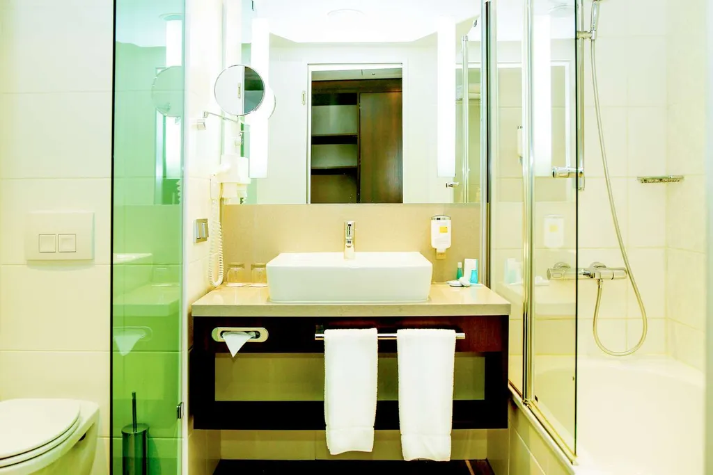 В номере: двуспальная кровать (180х200 мм), ковровое покрытие, гостиный уголок с ЖК-ТВ (32 дюйма, 40 каналов, включая спутниковые), Wi-Fi, письменный стол, кондиционер, гардероб, сейф, мини-бар, ванная комната с ванной, халатом и тапочками, туалет, проводной интернет и др.