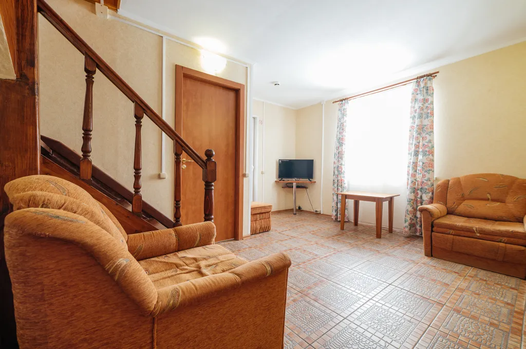 Во всех номерах — современная мебель, телевизор, мини-холодильник, микроволновая печь, чайник, набор посуды. В ванных комнатах — душевая кабина, фен и горячая вода круглый год.
