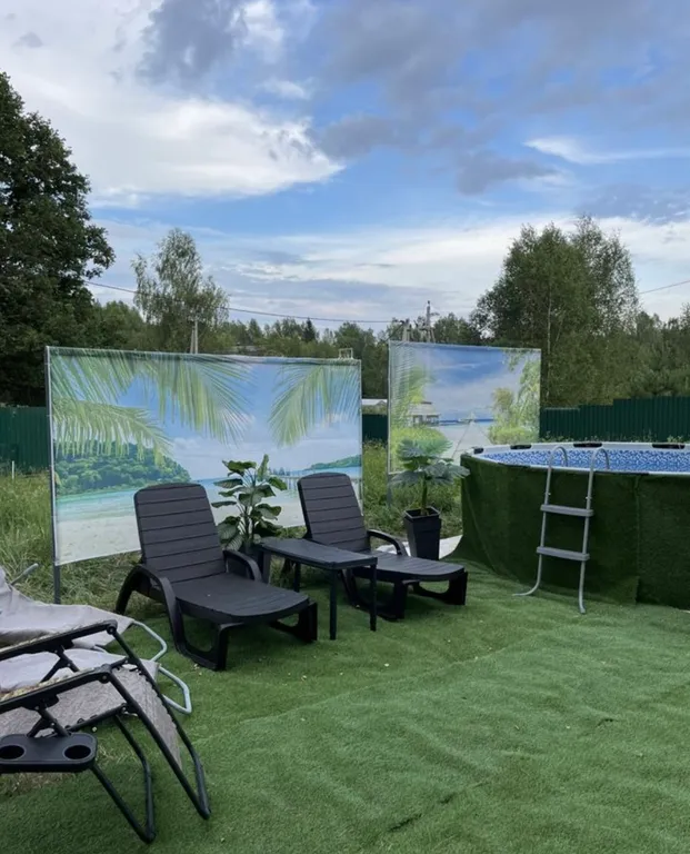 У дома есть своя территория для отдыха с бассейном и шезлонгами, где вы можете загорать и наслаждаться чистейшим воздухом соснового бора.