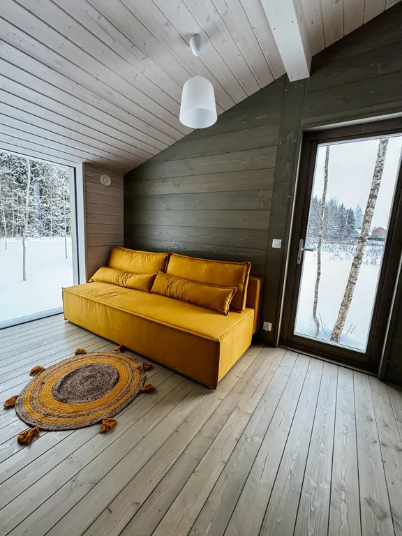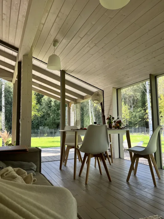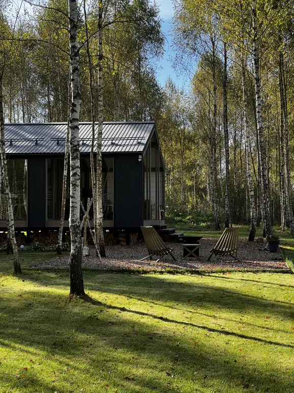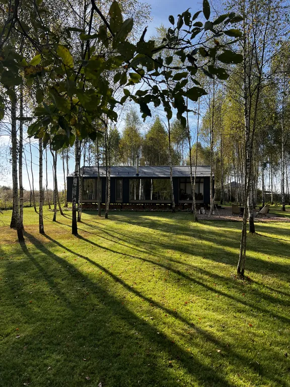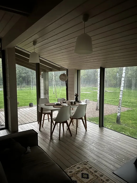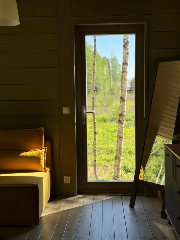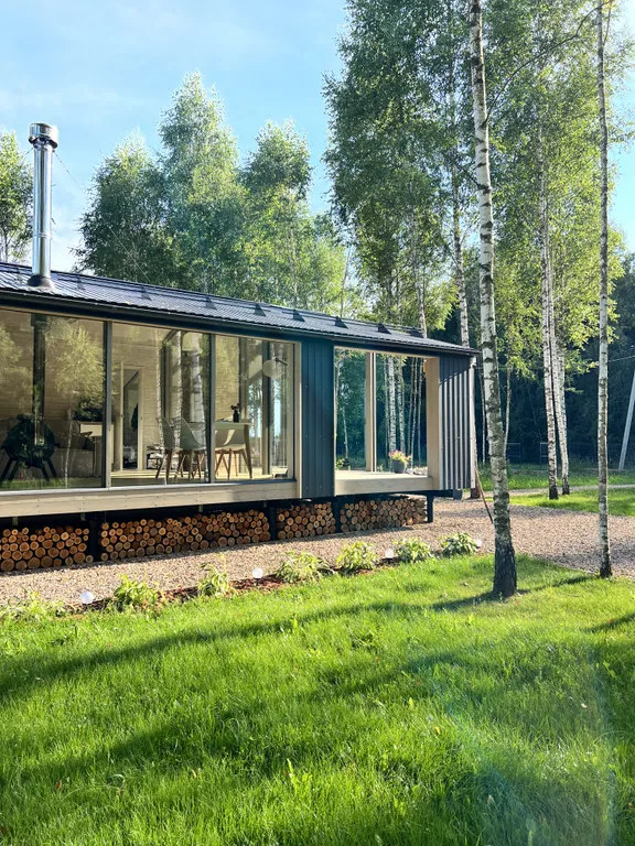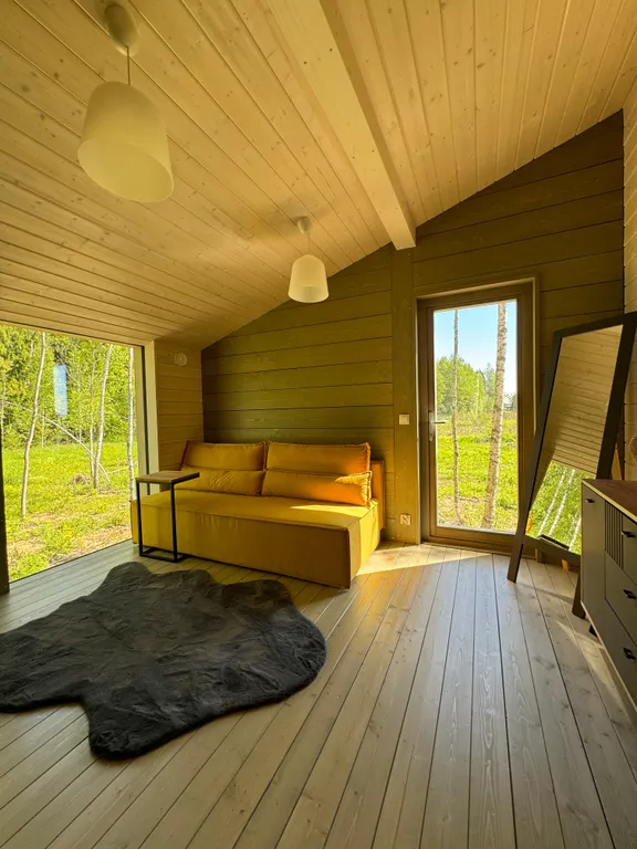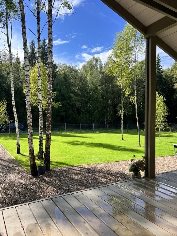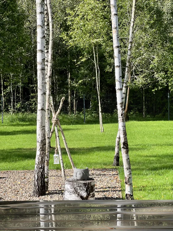 От дома — прямой выход в лес, где в сезон можно собирать ягоды и грибы.