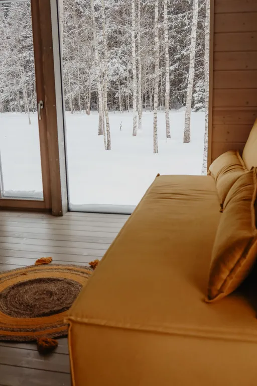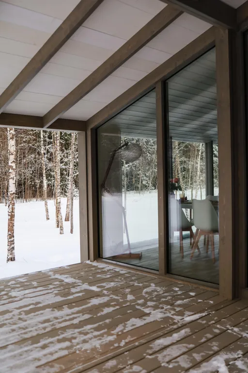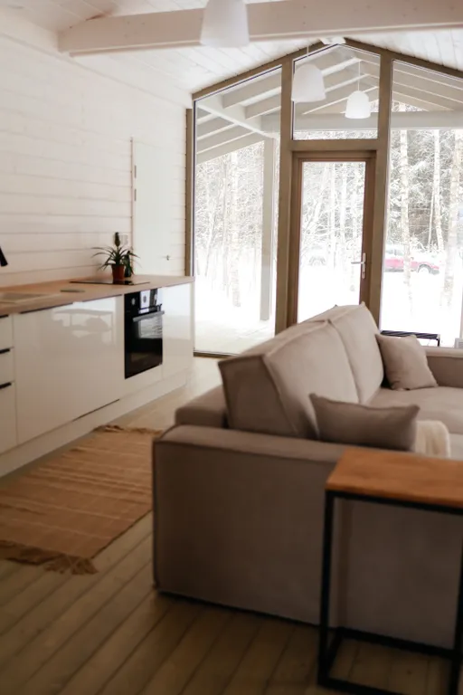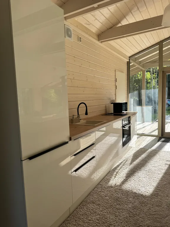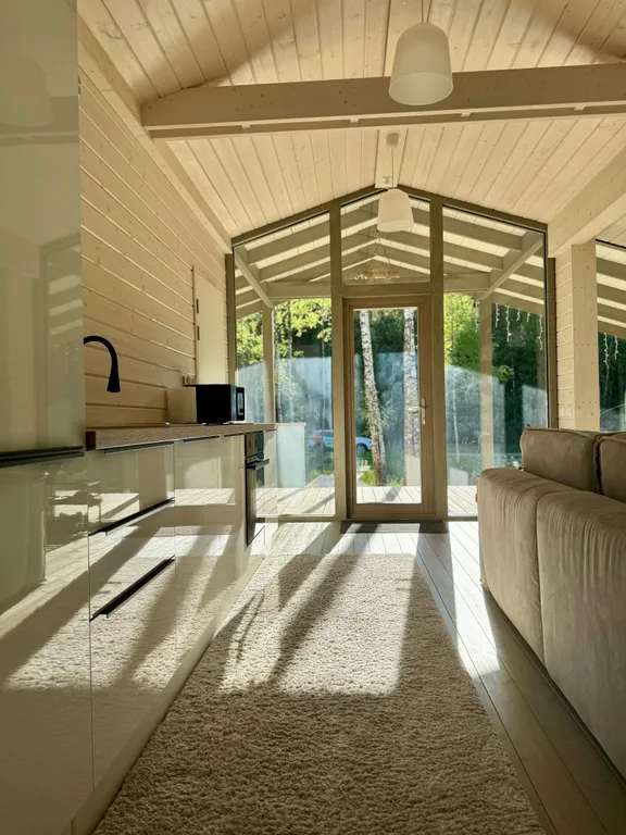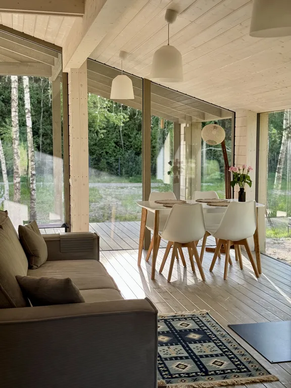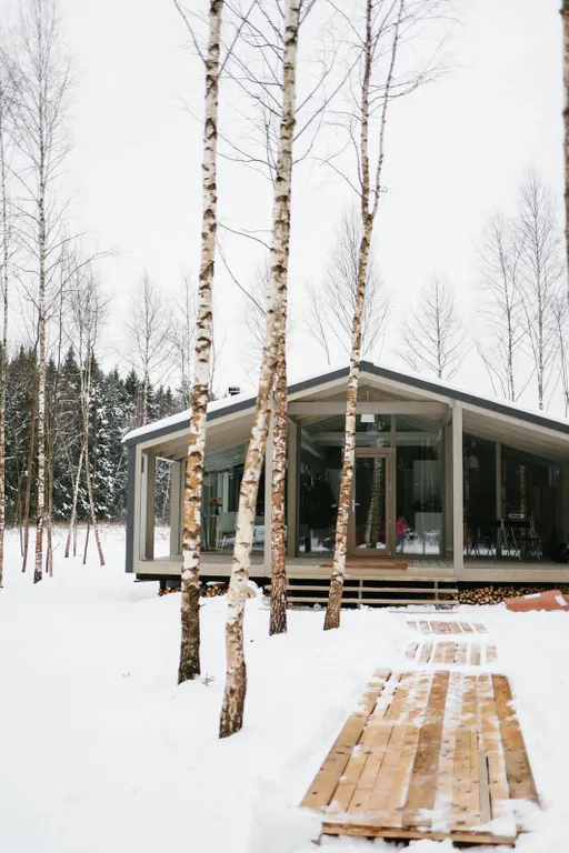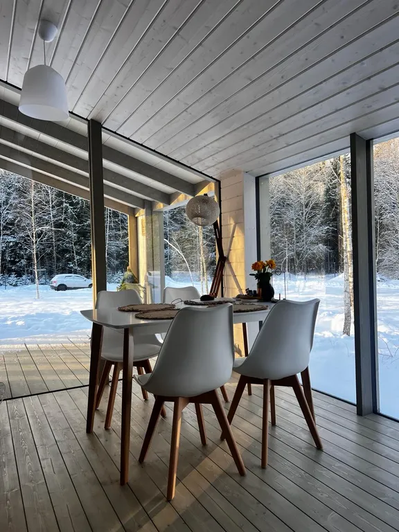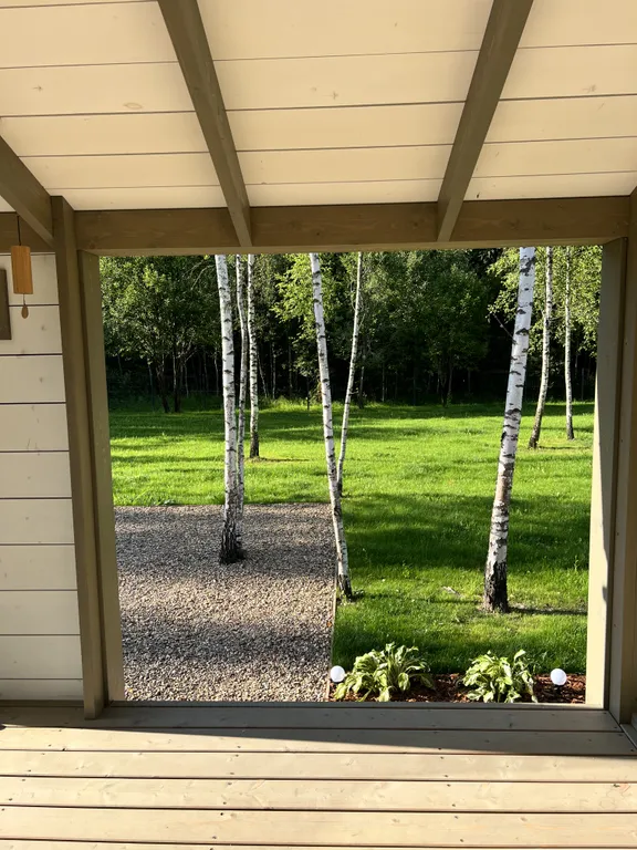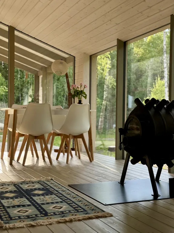 От дома — прямой выход в лес, где в сезон можно собирать ягоды и грибы.