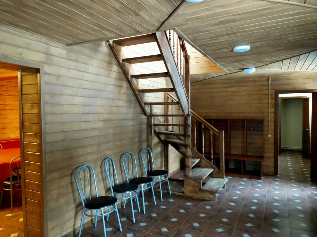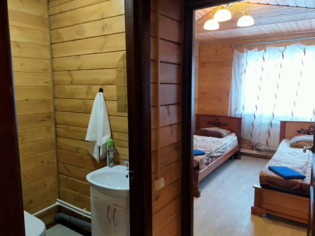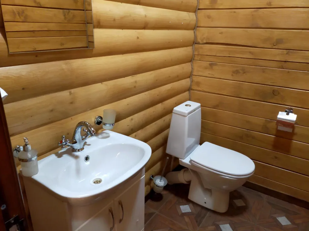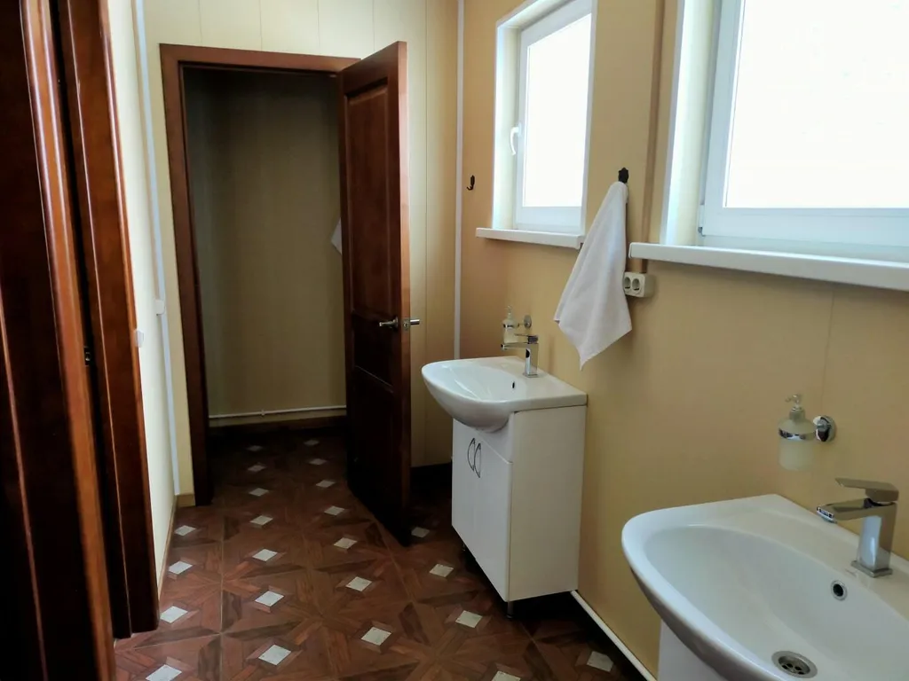 Прихожая, кухня, гостиная, пять санузлов. Душ, туалет, раковина. Туалетные принадлежности: мыло, шампунь, комплект полотенец на каждого гостя, фен.