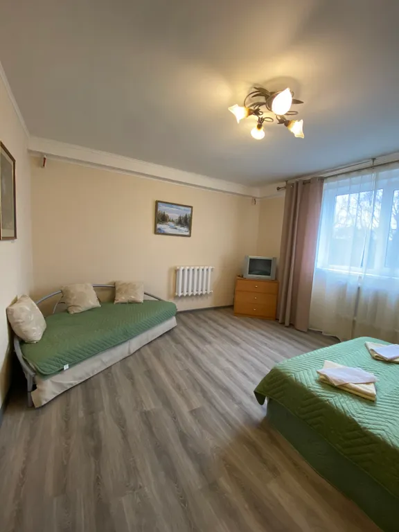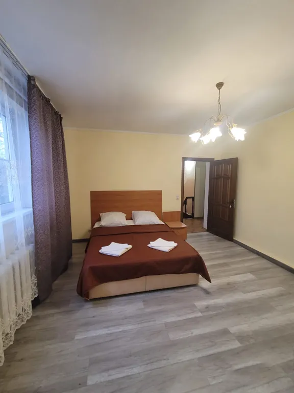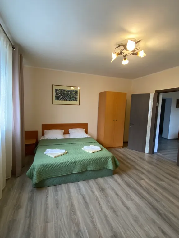 Апартаменты предназначены как для семейного досуга, так и для корпоративных мероприятий. Общая площадь составляет 160 кв.м. на 6 жилых комнат. На каждом этаже есть ванная комната (1-ый этаж - ванна, 2-ой – душевая кабина), а также 4 односпальные кровати, 4 двуспальные кровати. Для автомобилей есть специально обустроенная стоянка.